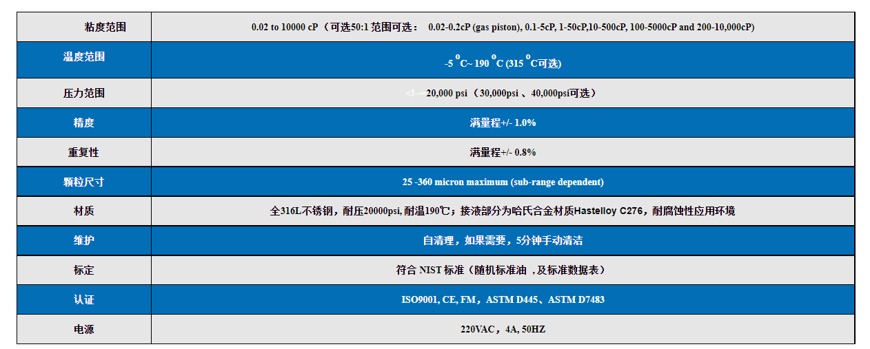 1.高溫高壓粘度計(jì)(VISCOlab PVT+):劍橋粘度公司的ViscoLab PVT+(壓力-體積-溫度)是在高溫和高壓下測(cè)定粘度的全球?qū)嶒?yàn)室標(biāo)準(zhǔn)。ViscoLab PVT+高壓粘度計(jì)設(shè)計(jì)用于儲(chǔ)層流體分析、相態(tài)行為、超臨界流體和其他研發(fā)應(yīng)用中的粘度和溫度測(cè)試。